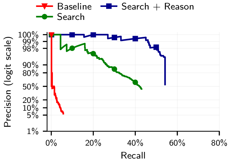 As candidate pools grow to tens of thousands, LLM-based attacks degrade gracefully at high precision. This implies that with sufficient compute, these methods would already scale to entire platforms. With future models, we can expect that performance will improve while the cost will only go down. (See Section 4.3 and Section 6.4 for our scaling analyses.)